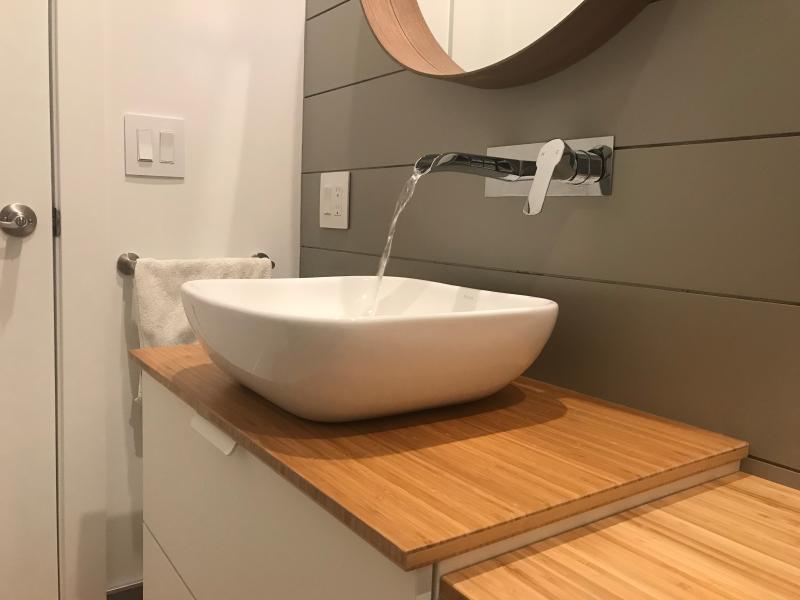 Its sleek modern design elevates any bathroom and leaves the countertop cleared for a more contemporary look.